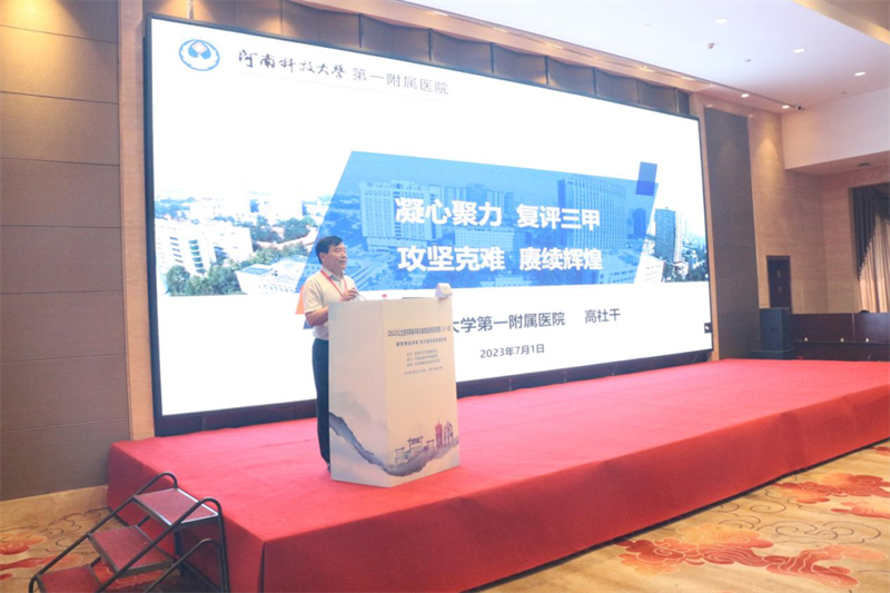 焦德强副处长在致辞中指出,医院评审是政府实施行业监管,推动医院不断加强内涵建设,完善和落实医院管理制度,促进医院高质量发展的重要抓手。河南省卫健委始终把医院评审作为评价、监督、保障和提高医疗服务质量的重要方式。今年,河南省新一轮三级医院评审工作已经正式启动,这次评审将全面落实《河南省三级医院评审标准实施细则2022版》要求。要求各级医院要切实提高政治站位,统一思想提高认识,科学规划评审工作,抓好评审契机,强龙头、壮筋骨、通血脉,实现医院在“十四五”期间高质量跨越式发展,推动河南省医疗工作再上新台阶,为全省人民的健康福祉作出更大贡献。
