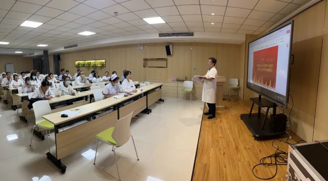 按照市委、市卫生健康委统一部署,9月26日至28日,安阳市肿瘤医院举办学习贯彻习近平新时代中国特色社会主义思想主题教育第一期读书班,为期3天,为医院各党支部和全体党员干部“打好样板”,形成以上率下的良好带动,持续推动医院主题教育走深走实。 组织由12个党支部书记参加的主题教育工作专题研讨会,针对理论学习不深不实等问题,院党委书记陈美红要求下一步在重点任务落实上加压推进,理论学习突出“深”、调查研究突出“实”、推动高质量发展突出“效”、检视问题突出“准”、建章立制突出“严”,围绕医院下发的主题教育《实施方案》,不偏不倚盯紧“五个贯穿始终”,在理论学习、调查研究、检视整改等方面工作更好的找到“最优解”,实现医院各支部在主题教育工作上的齐头并进、互促共融。 读书班邀请市委党校图书馆馆长潘峰教授作《深刻领会习近平新时代中国特色社会主义思想》专题辅导报告。潘峰教授围绕“深刻领会习近平新时代中国特色社会主义思想”的主题,从“习近平新时代中国特色社会主义思想的实践依据、科学内涵和全面坚持发展新时代中国特色社会主义的基本方略”三个方面入手,进行了深入的论述,为医院党员干部更加深刻领会习近平新时代中国特色社会主义思想的历史逻辑、理论逻辑和实践逻辑,提供了指导和建议。