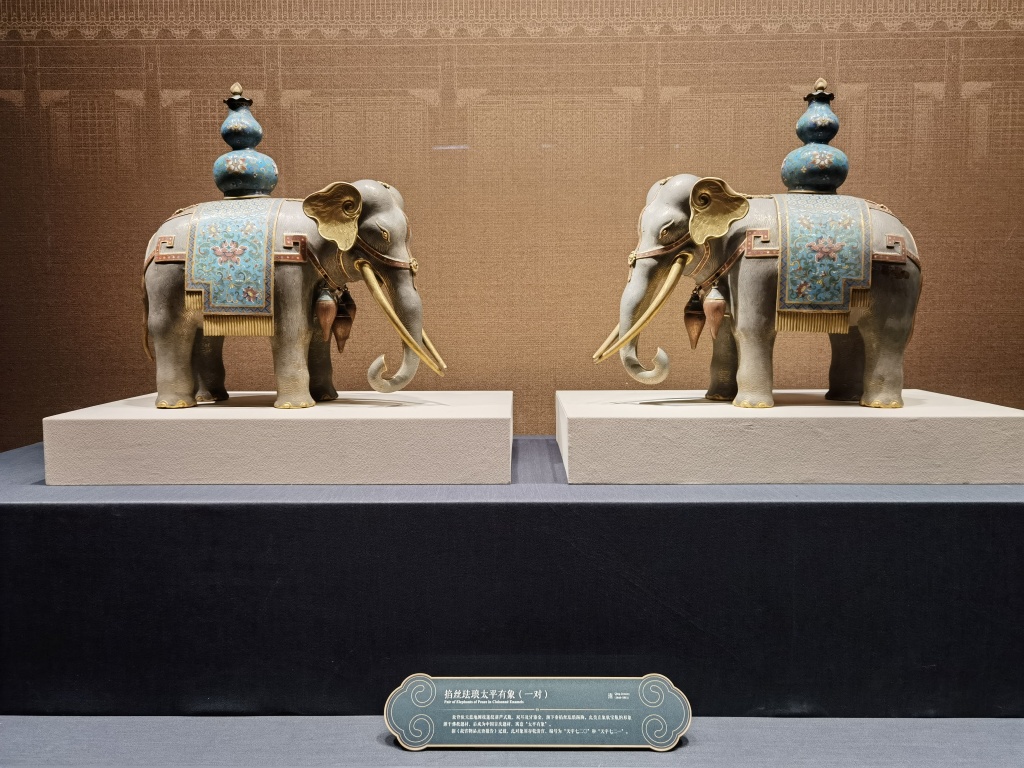 故宫展出的掐丝珐琅太平有象。(总台央视记者程爱华拍摄)