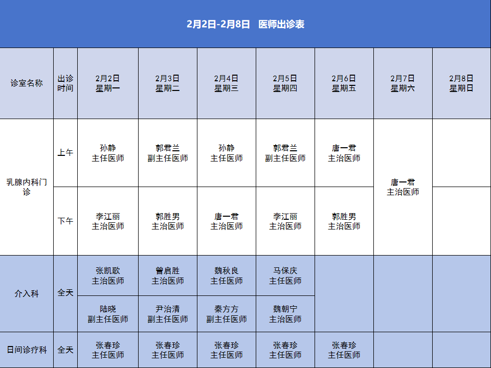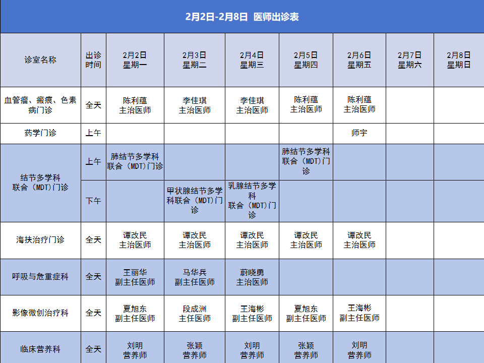 首页 > 就医指南 > 出诊信息 > 便民服务丨安阳市肿瘤医院2026年2月2日-2月8日门诊出诊信息