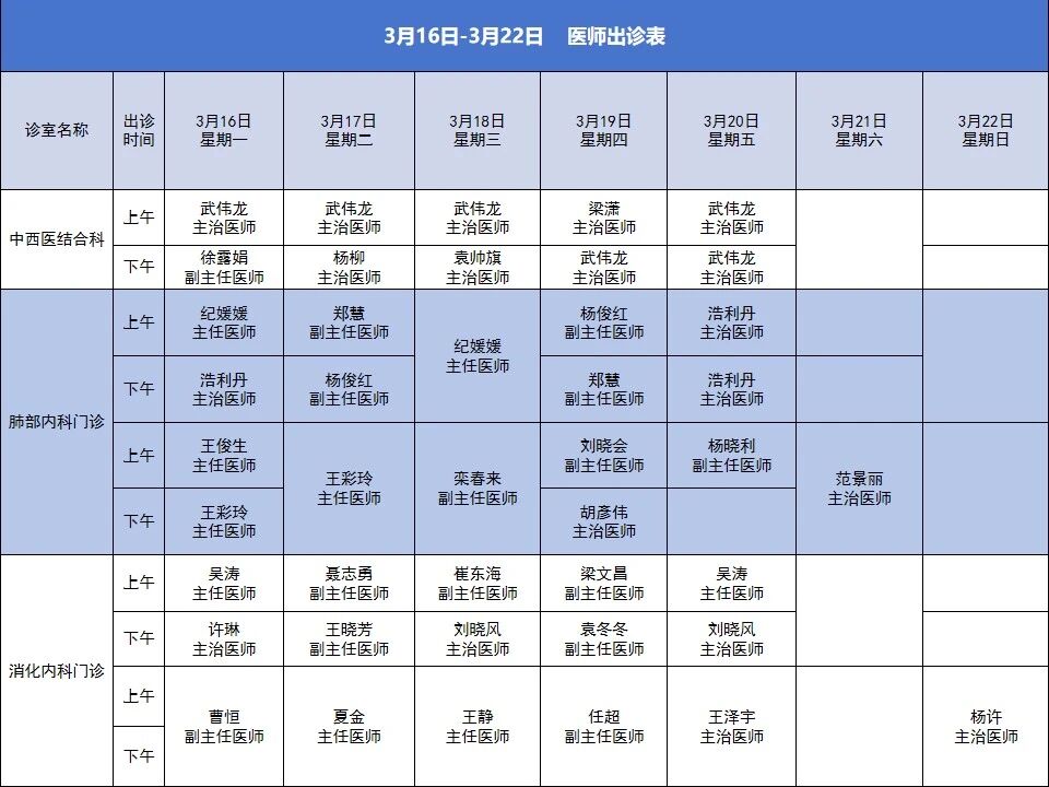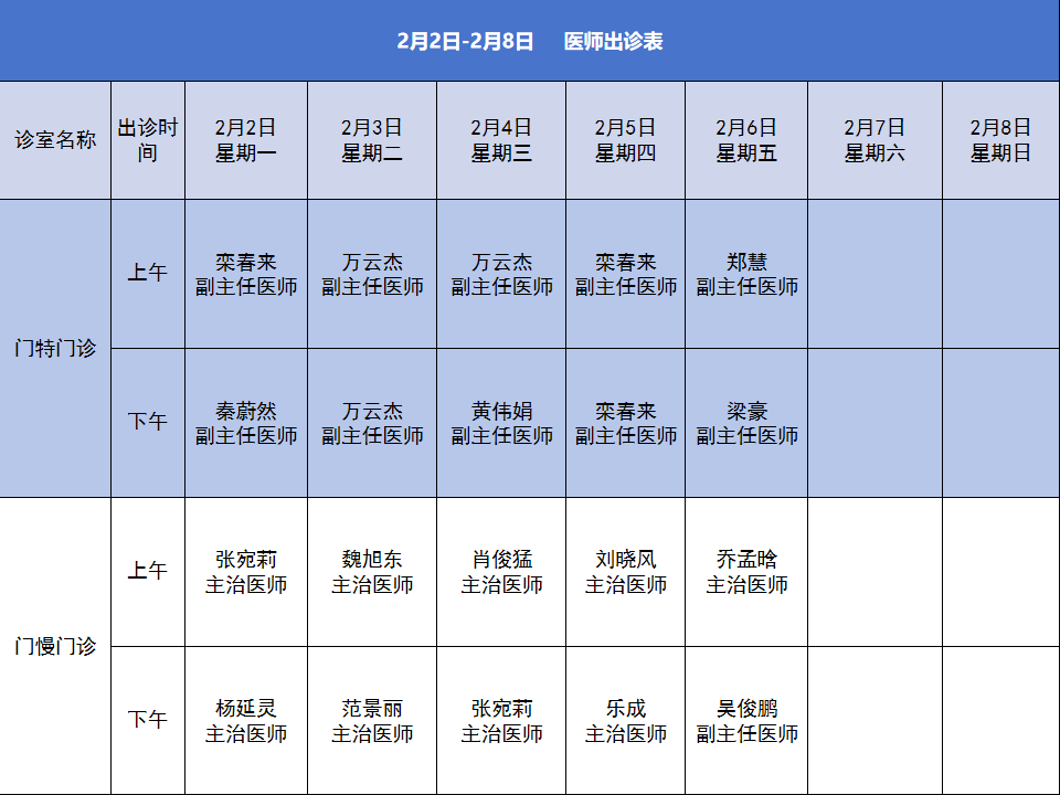 2、医生出诊时间如遇特殊情况有变动,以当日安排为准,敬请谅解。