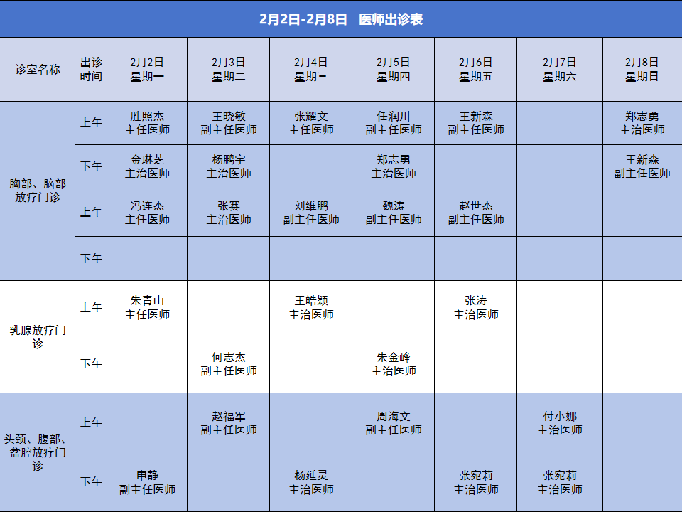 便民服务丨安阳市肿瘤医院2026年2月2日-2月8日门诊出诊信息