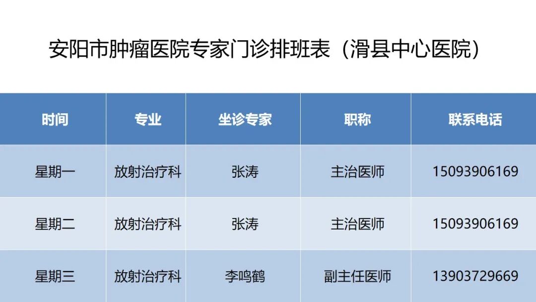 为持续推进安阳市肿瘤防治专科医联体建设,加大优势医疗资源下沉,安阳市肿瘤医院在医联体成员单位开放专家门诊,方便居民就医。服务热线:0372-2232193