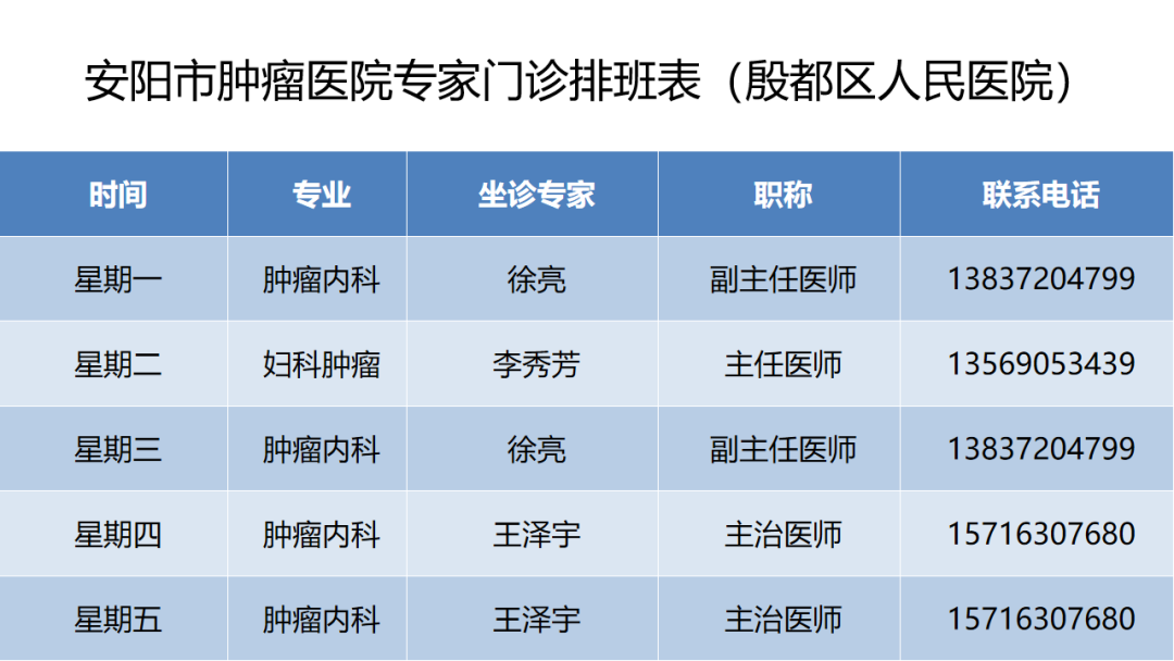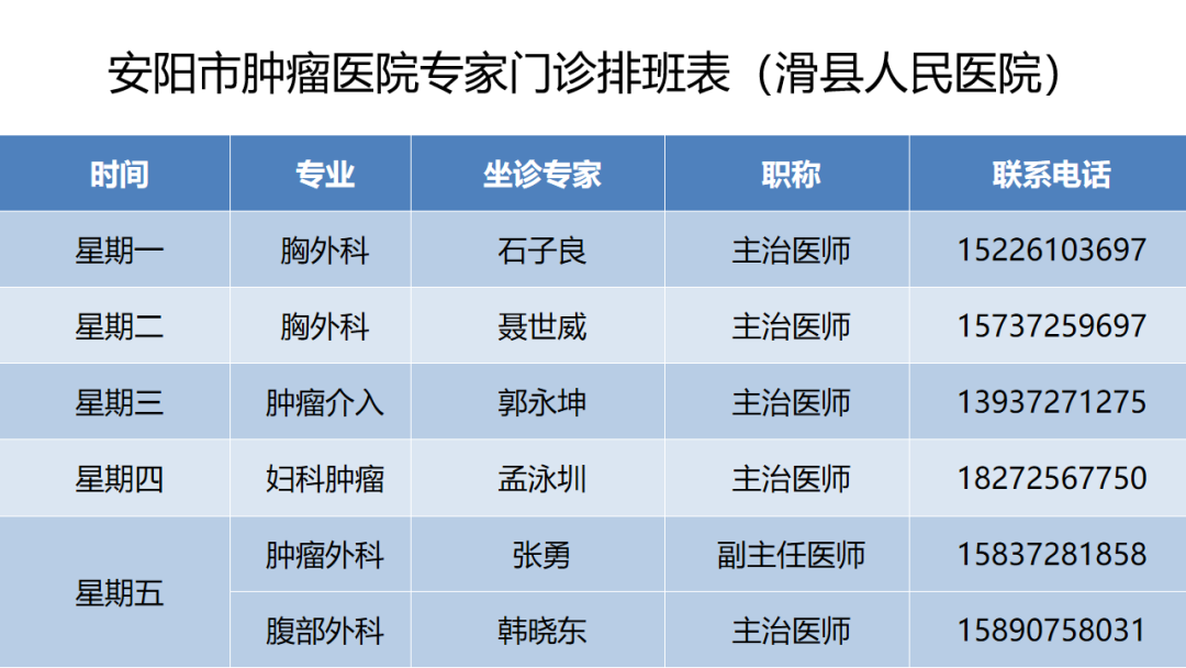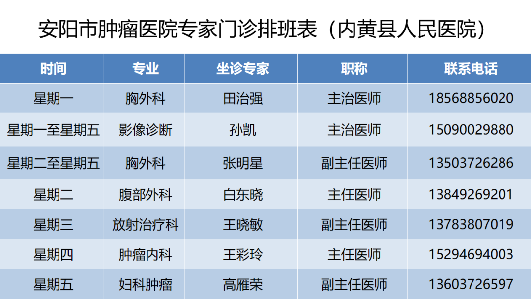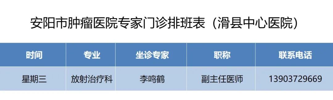 安阳市肿瘤防治专科医联体丨安阳市肿瘤医院在医联体成员单位6月16日—6月20日专家门诊排班表