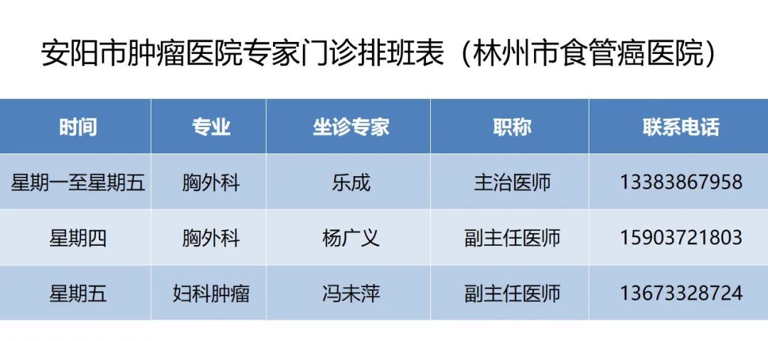 为持续推进安阳市肿瘤防治专科医联体建设,加大优势医疗资源下沉,安阳市肿瘤医院在医联体成员单位开放专家门诊,方便居民就医。服务热线:0372-2232193